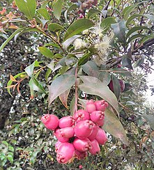 Árbol ornamental y frutal originario de Australia, comúnmente llamada árbol de las cerezas magenta, con hojas verdes oscura en el haz y verde pálido en el envés y ápices de crecimiento de atractivo color purpura rojizo, con ramilletes de flores blancas, con fruta comestible de color rojo magenta, en racimos con un sabor ácido parecido a las manzanas.